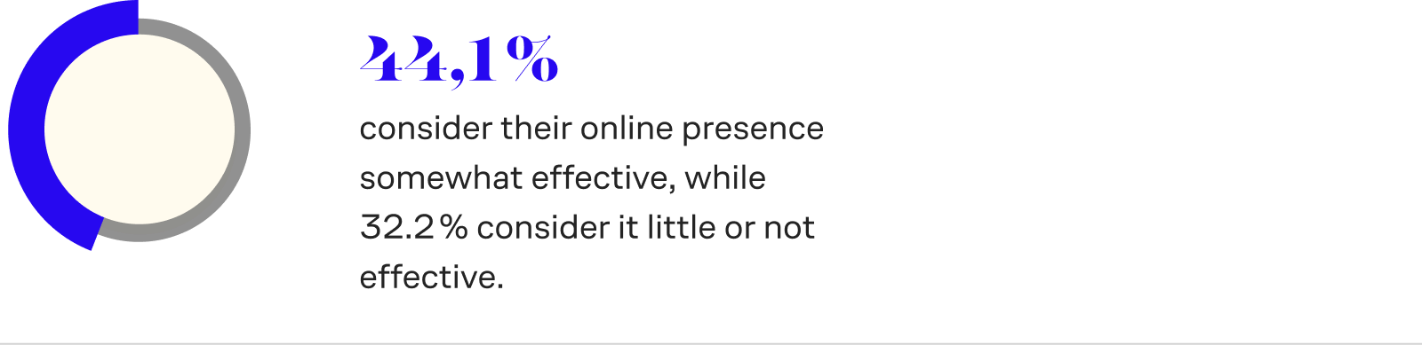 Many say that their digital presence is not meeting its goals: fewer than 30% of nonprofits rate their online communication as effective. The community, cultural, and social sectors report the largest gaps.