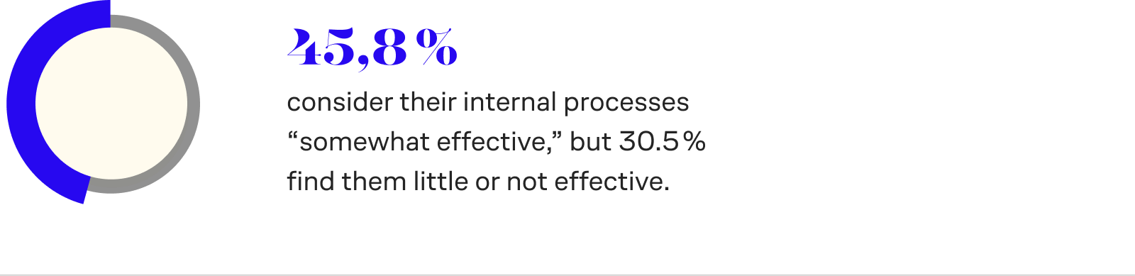 Regarding organizational processes, nearly half of respondents consider their processes inefficient or fragmented.